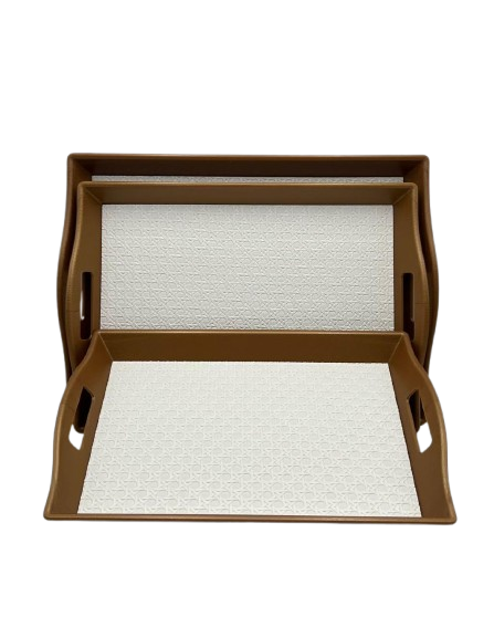 This is a set of three (or more) elegant serving trays designed to elevate your entertaining and simplify transport.
