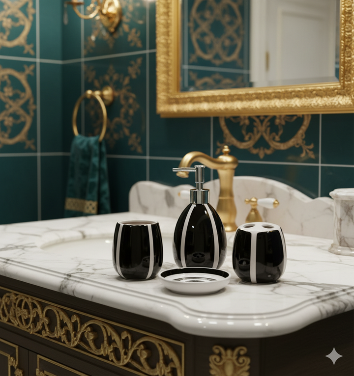4 Pcs Bath Set Lining Black