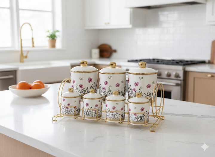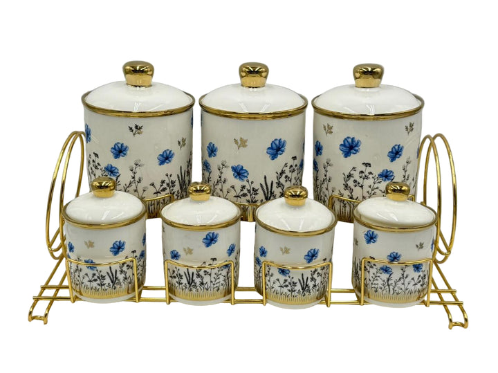 7-Piece Ceramic Canister Set with a Gold-Tone Rack