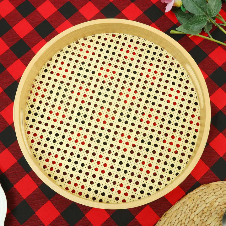 Antique Wooden Rattan Pattern Round Serving Tray Set