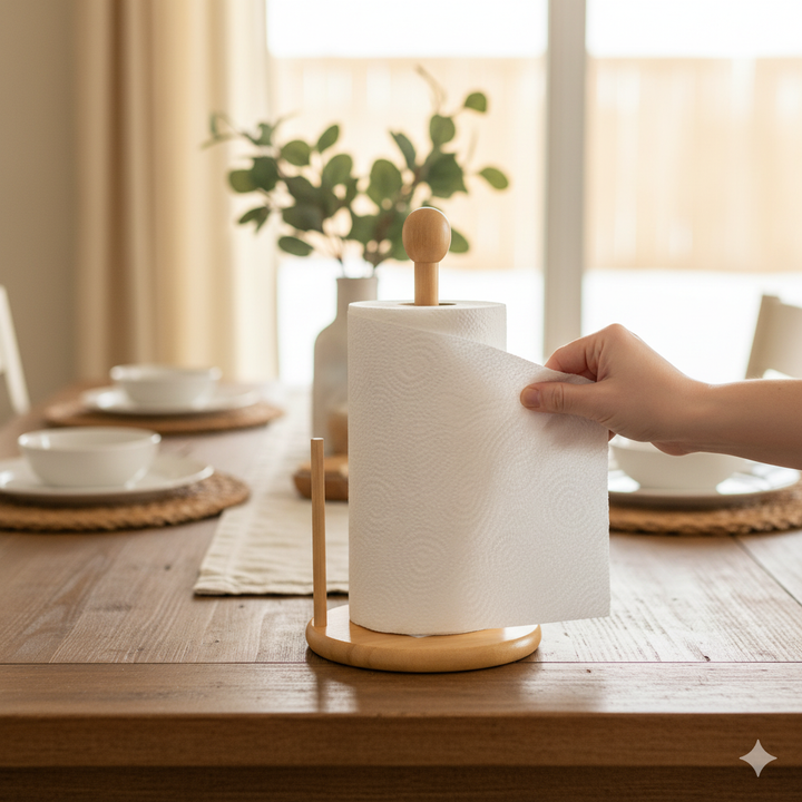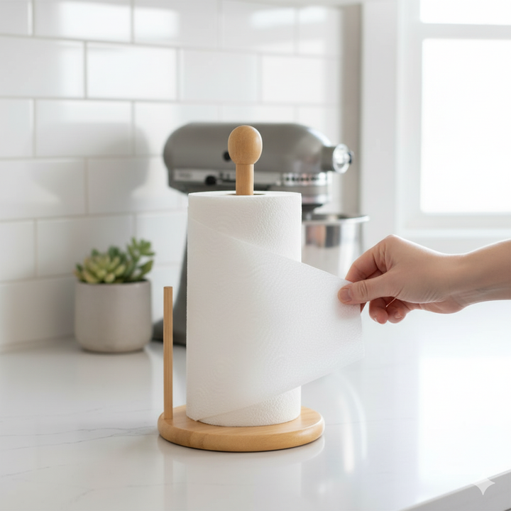 Key Feature: A defining feature is its easy-access, single-tear design. The vertical spindle and stable base allow a user to pull and tear off a single sheet of paper towel quickly and efficiently with just one hand, which is essential for busy kitchen tasks.