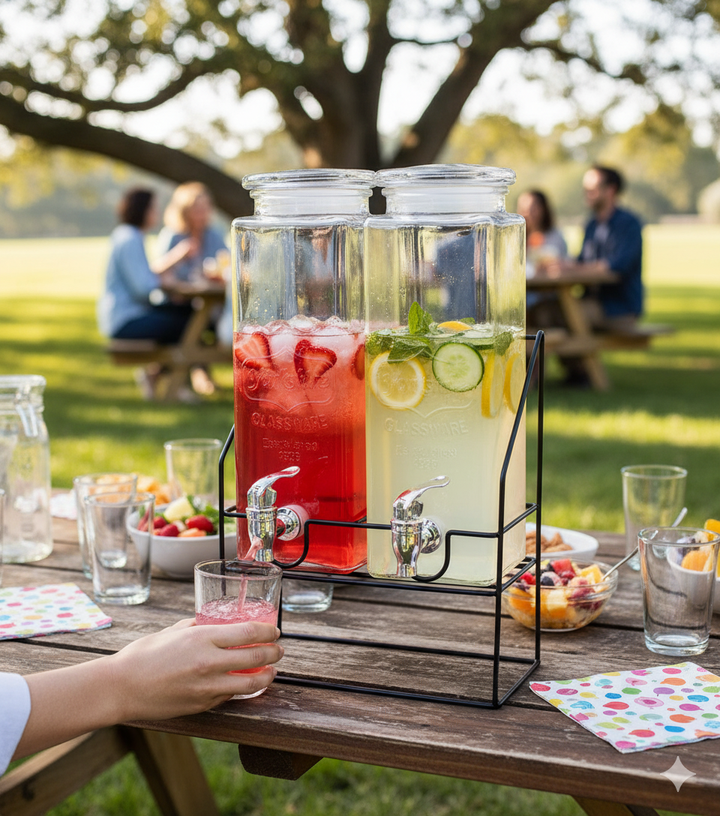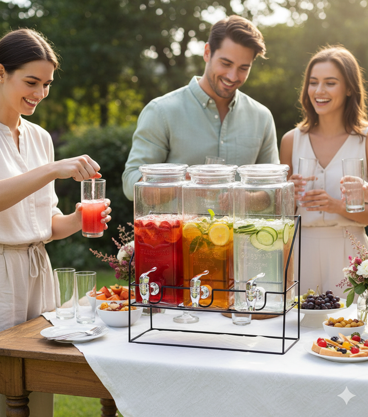 This is a stylish and functional drink dispenser, perfect for serving beverages at parties, gatherings, or just everyday use.
