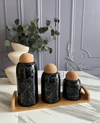Stylish Marble Design: The jars feature a sophisticated black marble finish with subtle gold veining, adding an elegant touch to any space.