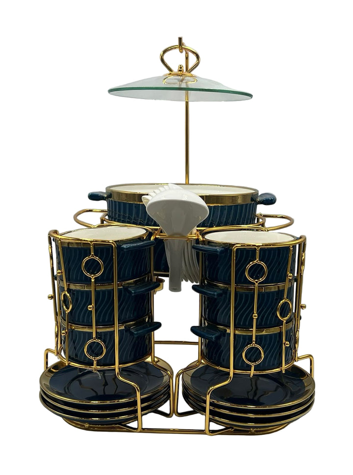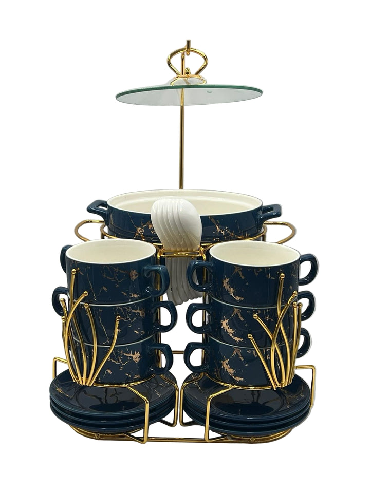 Ceramic Soup Set With Stand 22 Piece (BLUE)