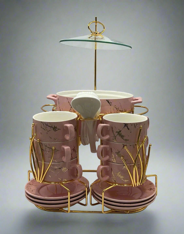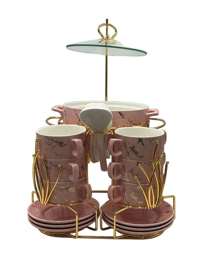 Ceramic Soup Set With Stand 22 Piece (PINK)