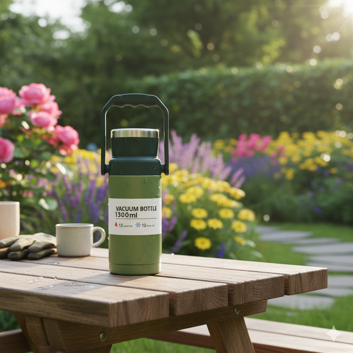 The primary purpose of this 1300 ml bottle is to transport and maintain the temperature of large volumes of beverages for long periods away from home.