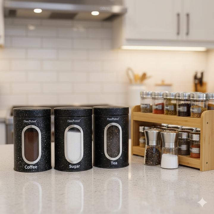 Haus Roland Coffee Sugar Tea Storage Jars 3Pcs Set (Premium Quality)