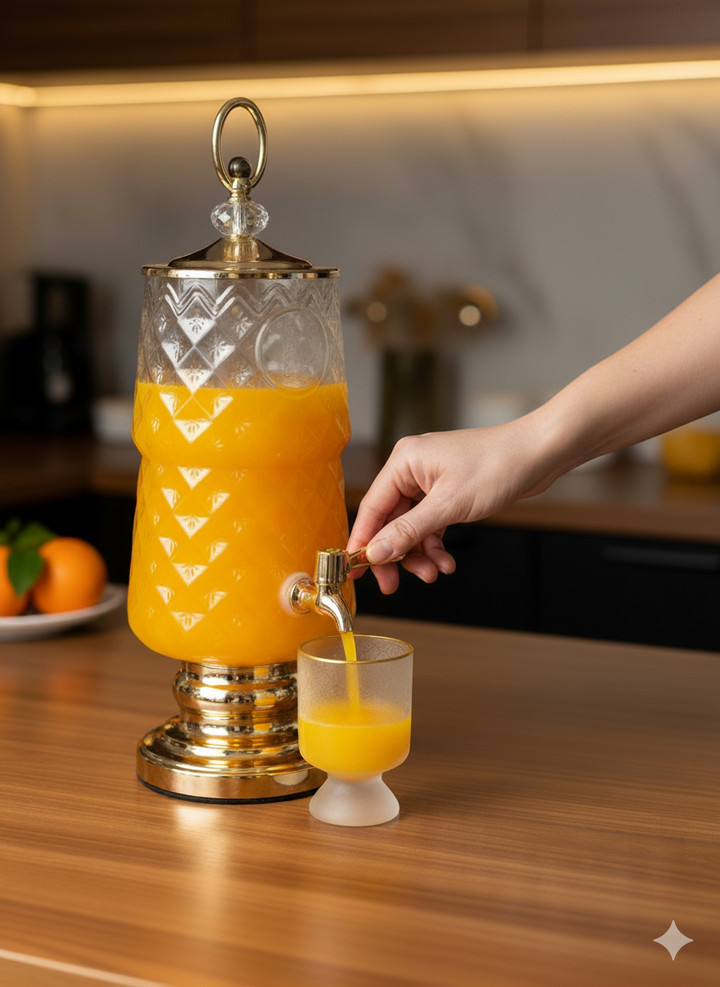 Diamond-Pattern Frosted Glass Dispenser 1Pc Dispenser 6Pc Glass