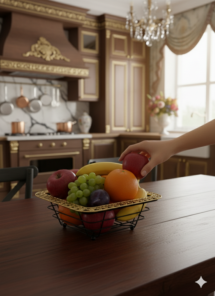 Elegant Square Premium Fruit Basket Black Gold