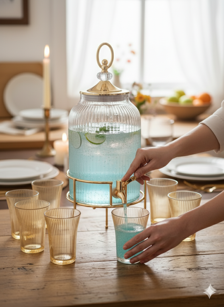 Spigot: It is fitted with a gold-toned spigot (tap), which complements the stand and adds a touch of coordinated glamour.
