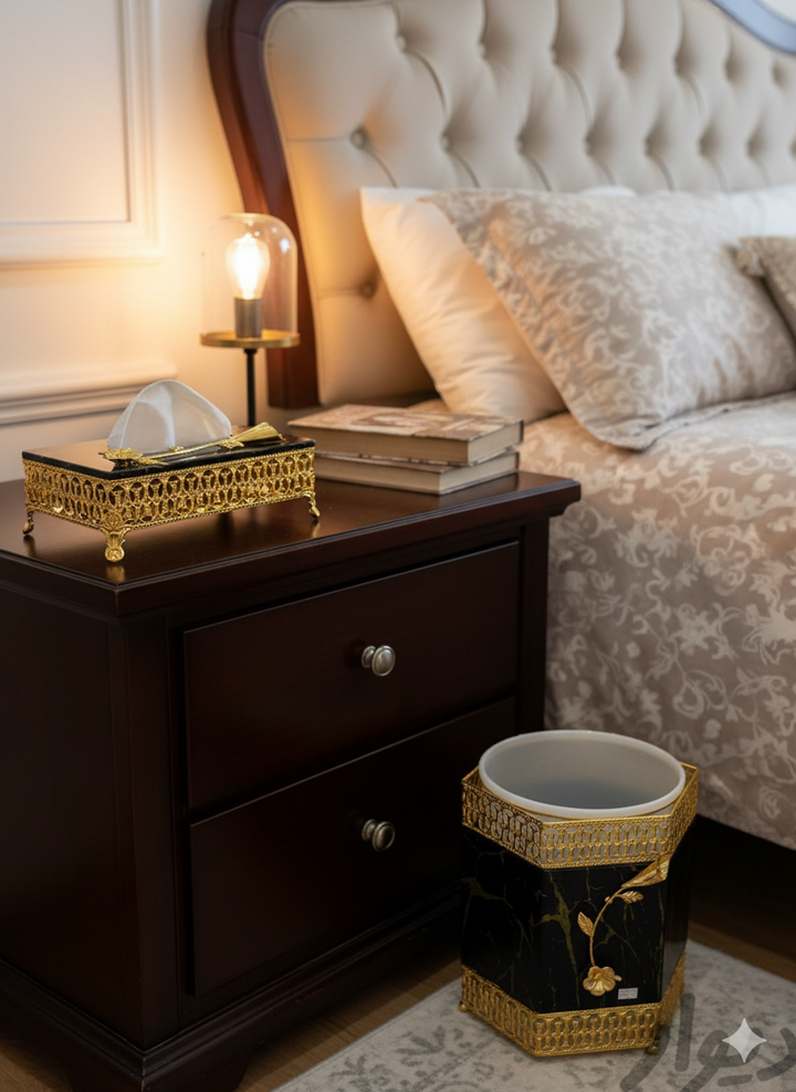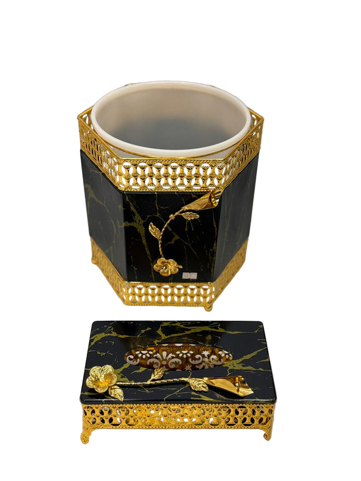 Glamorous Waste Bin and Tissue Box (Black Gold)