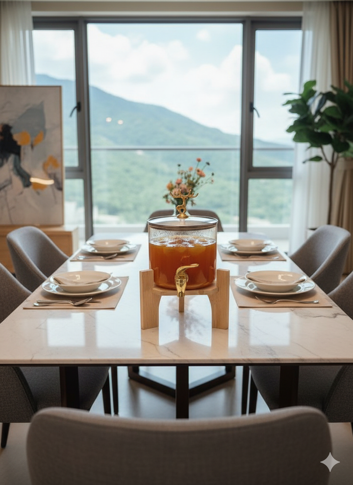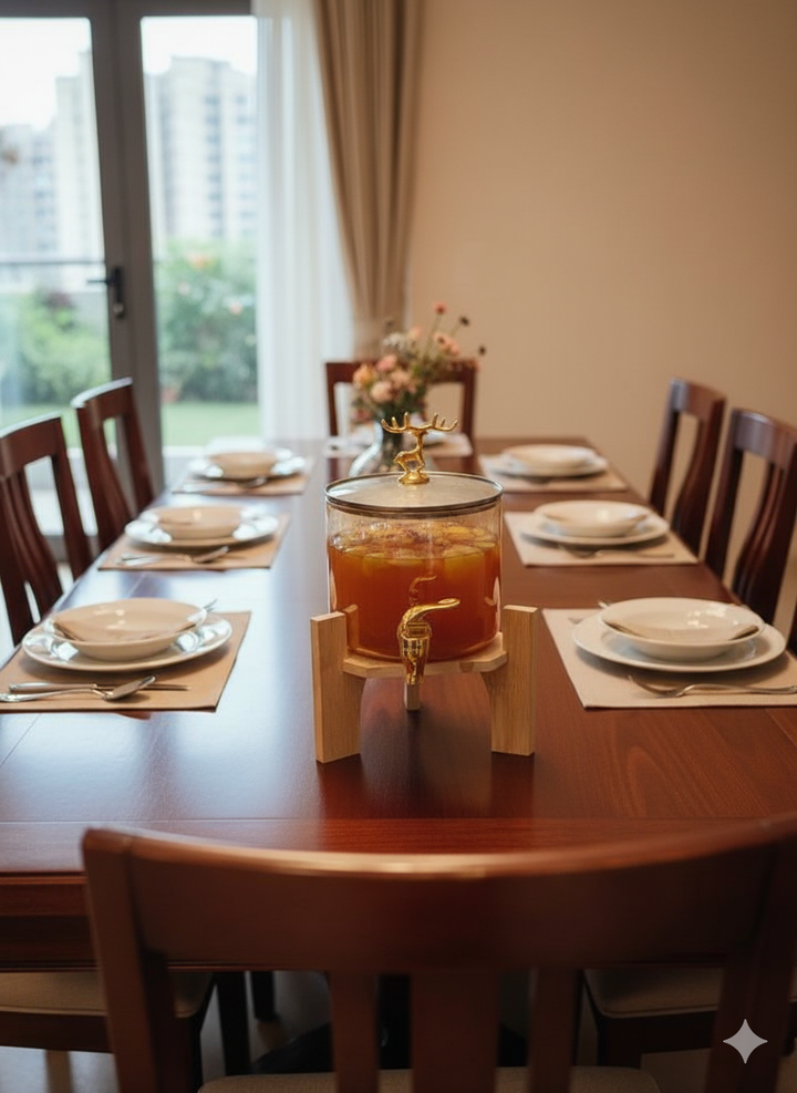 Golden Dear Glass Beverage Dispenser With Wooden Stand