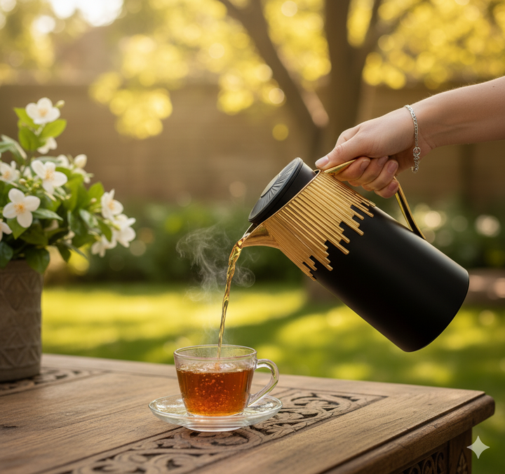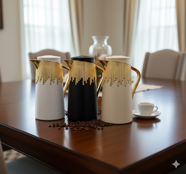 This Golden Fancy Thermo Bottle 1 Liter combines luxury and performance. Its elegant marble design and stainless steel insulation keep drinks hot or cold for hours—perfect for home, office, travel, or gifting.