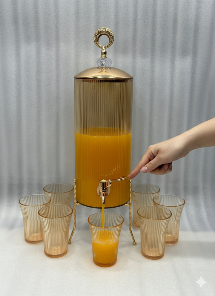 Golden Fluted Drink Dispenser 1Pc Dispenser 6Pc Glass