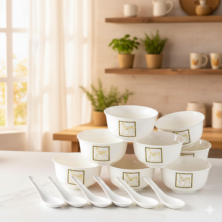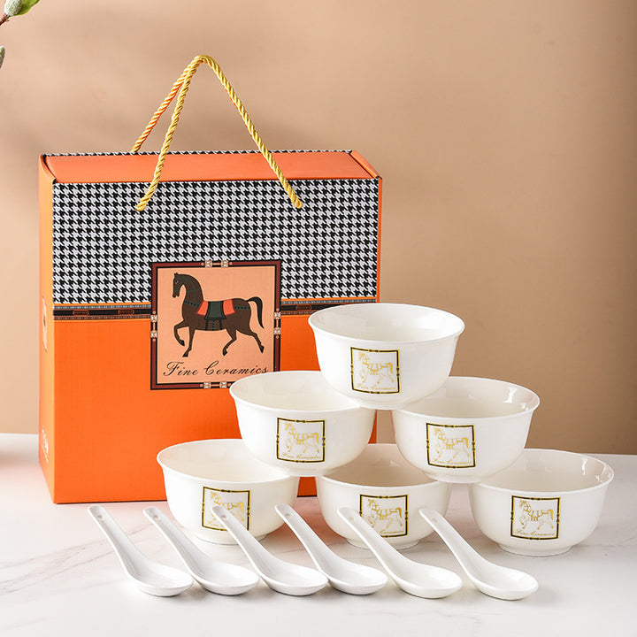 Horse Motif 6-Ceramic Bowl with 6-Spoon Gift Box
