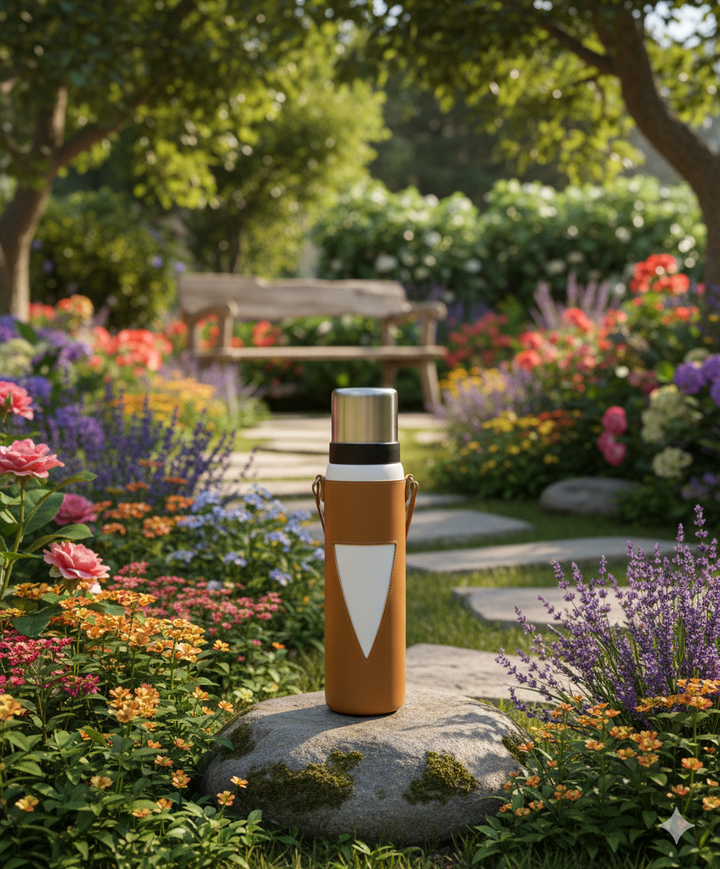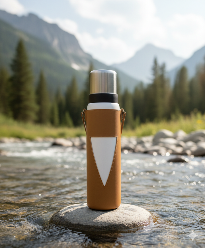 Sleeve/Carrier: The outer sheath and strap are made of leather or a high-quality leather-like material, providing both a stylish look and an extra layer of protection and insulation.