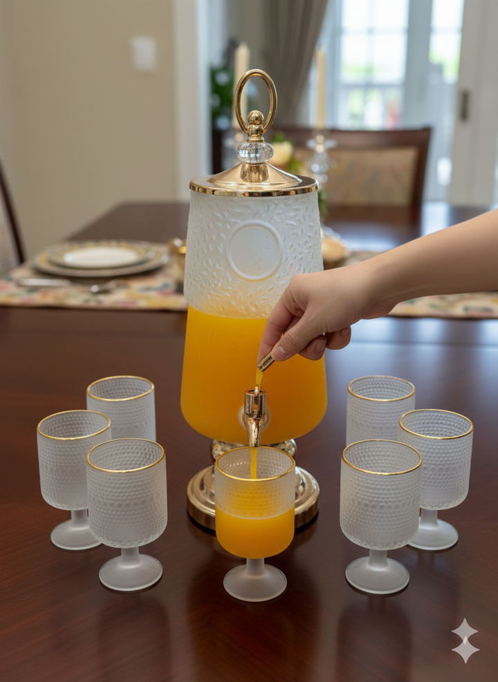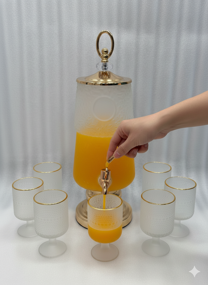 juice Dispenser with Spigot and Stemmed Glasses 1Dispenser 6Glass