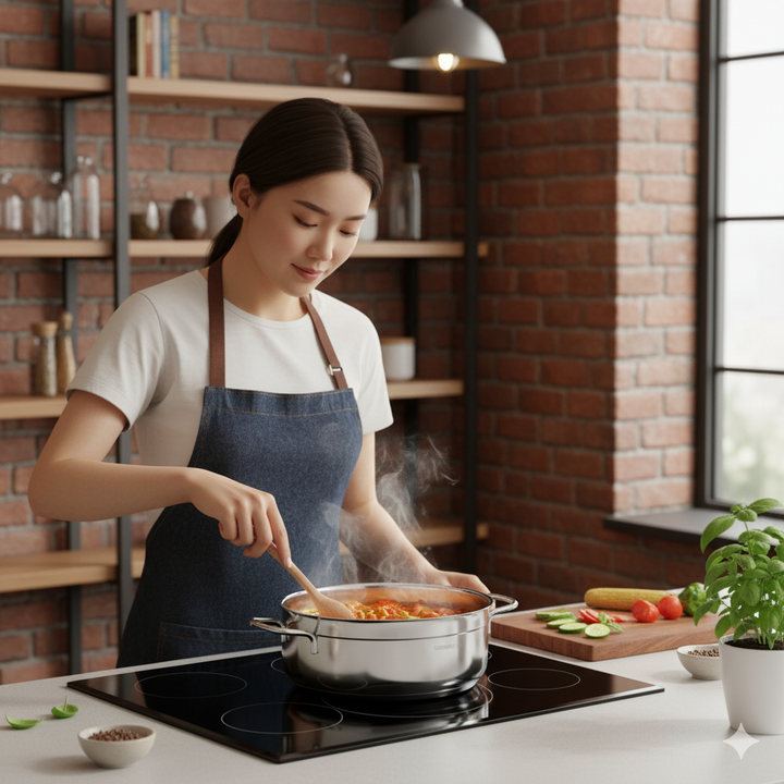 - Dishwasher safe. (Flat lids of the cookware, don't take up much space in the dishwasher and is ideal for easy alignment)