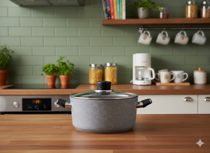 - Made of all-natural materials and with environmentally friendly technology, Palma makes delicious meals using very little oil with its extra scratch-resistant volcanite-like PTFE coating and high temperature resistant silicone outer coating.