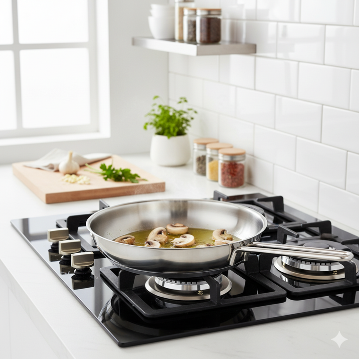 - 18/10 Cr-Ni stainless steel Super capsule base provides homogeneous heat conduction Ergonomic, non-burnt and particularly safe stainless steel handle.