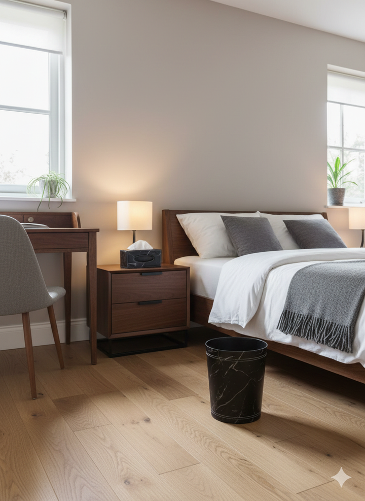 Purpose to Use: Primarily intended for use as a wastebasket or trash can in an office, bedroom, or bathroom to collect small amounts of refuse. It could also serve as a stylish general storage bin for items like magazines or rolled-up towels.