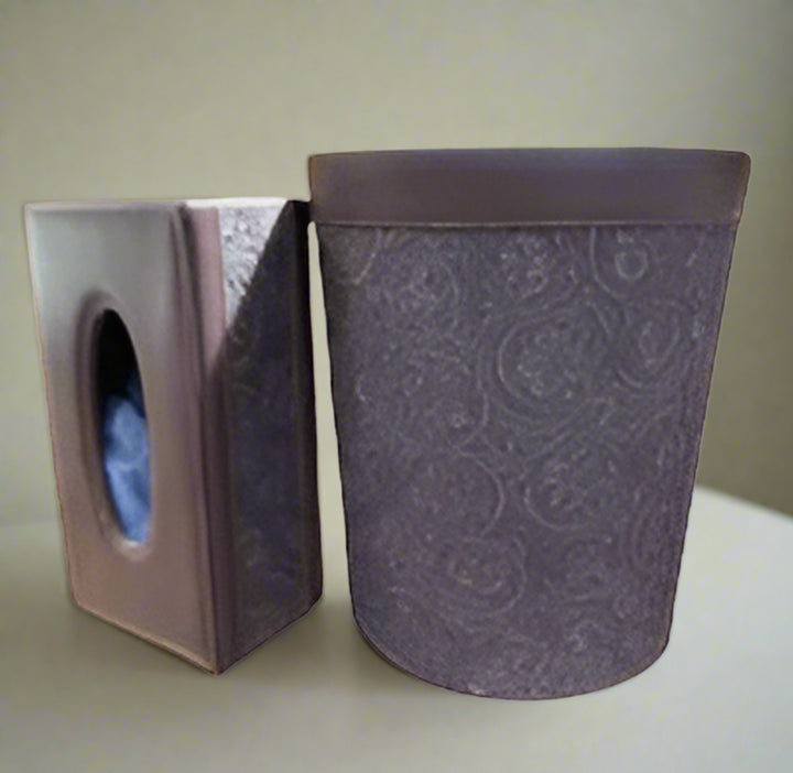 Leather Tissue Box & Dustbin Set-Floral