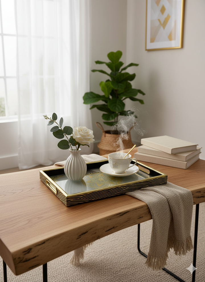 - Accents: Each tray is finished with stylish, gold-toned metal handles, which provide both a convenient grip for serving and a beautiful decorative contrast to the dark surface.