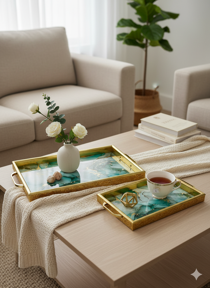 Use: Ideal for serving beverages, displaying luxury items, or as a vibrant decorative centerpiece on a coffee table or vanity.