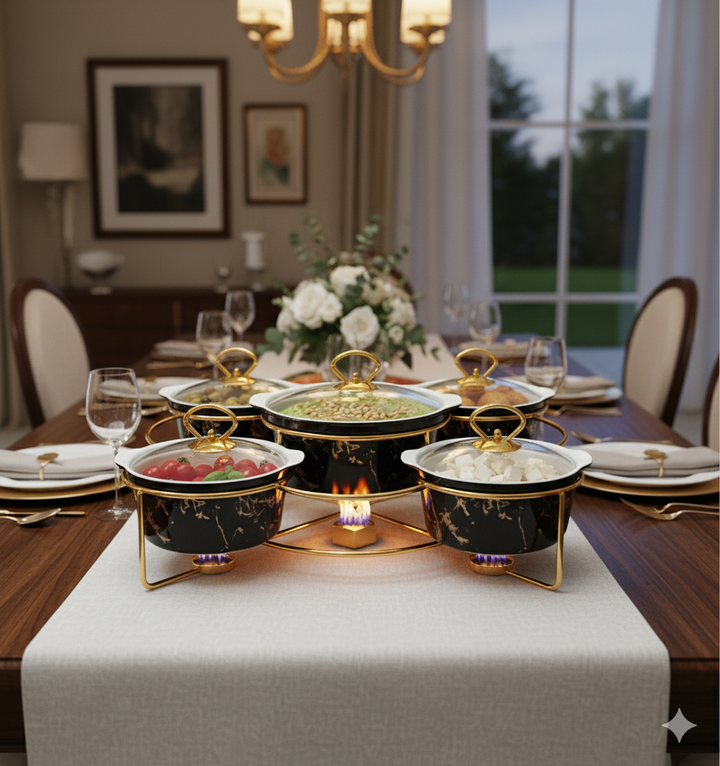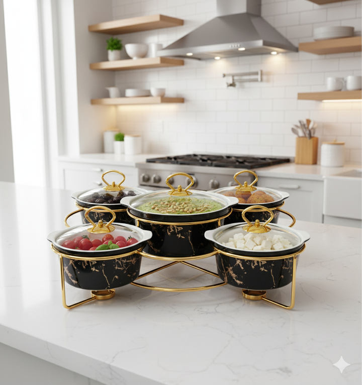 Luxury 5 Pcs Ceramic Chafing Dish Buffet Server Set (ROUND BLACK)