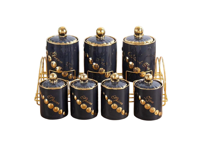 Luxury 7-Piece Ceramic Storage Canister Set With Golden Rack)