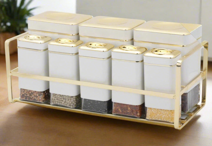 Luxury 8-Jar Spice Organizer with Gold Rack (238)