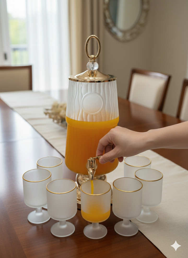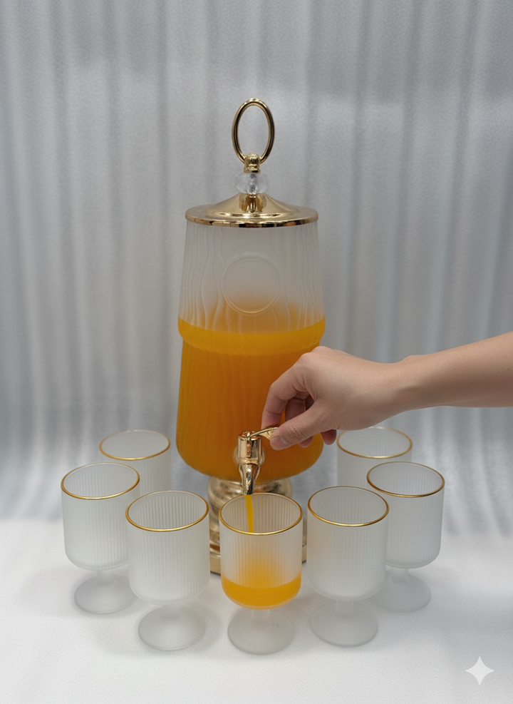 Luxury Beverage Dispenser Set 1Pc Dispenser 6Pc Glass