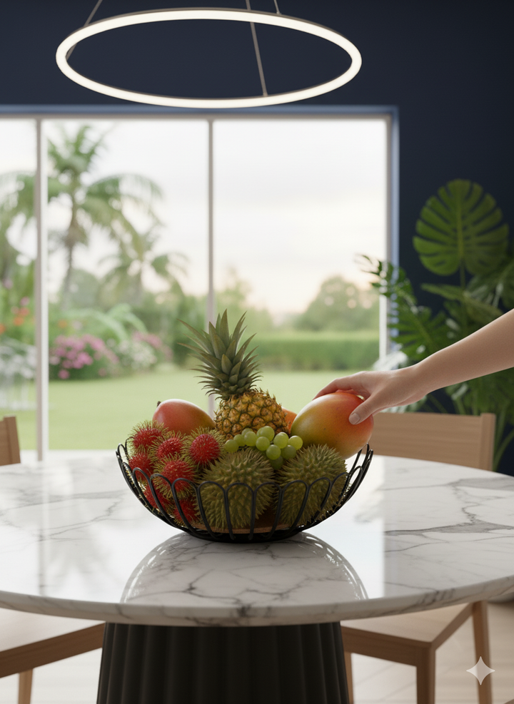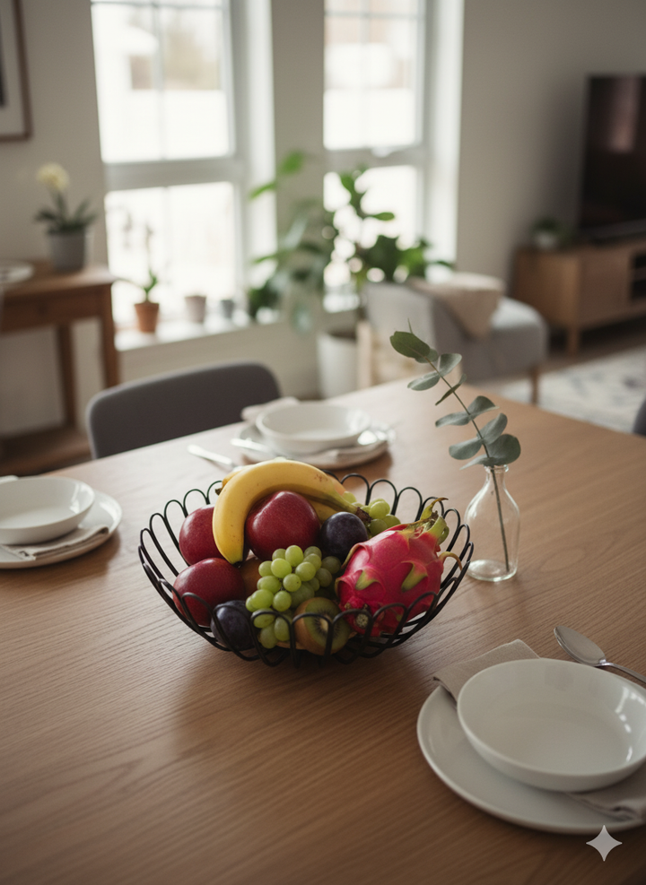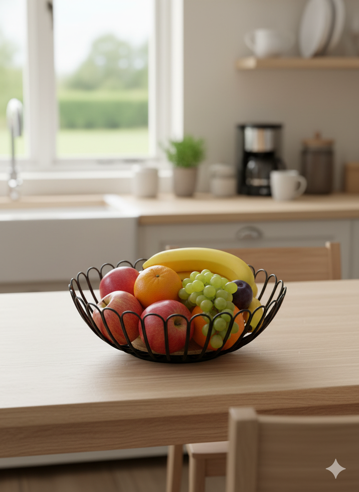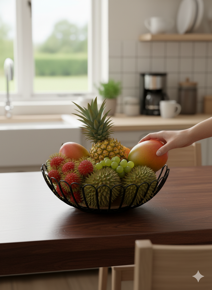Placement: Set the fruit basket on a stable, flat surface like a kitchen counter, dining table, or island.