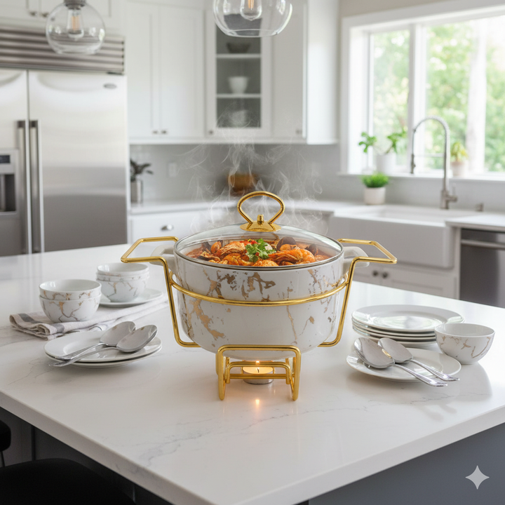 Luxury Ceramic Chafing Dish Buffet Server (ROUND WHITE)