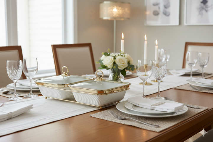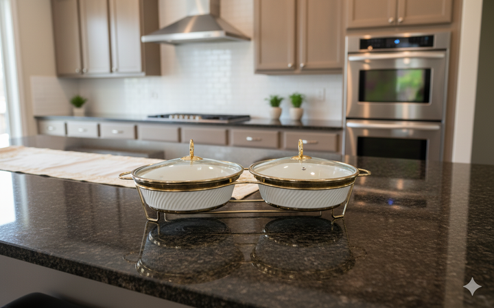A standout feature is its dual-chamber design with a warming stand. The metal stand not only holds the two separate serving dishes securely but often includes a space underneath for placing a small tea light candle or fuel canister (like Sterno). This chafing-dish-style function is essential for keeping two different food items—such as a main course and a side dish, or two different appetizers—at a perfect serving temperature throughout a meal or gathering.