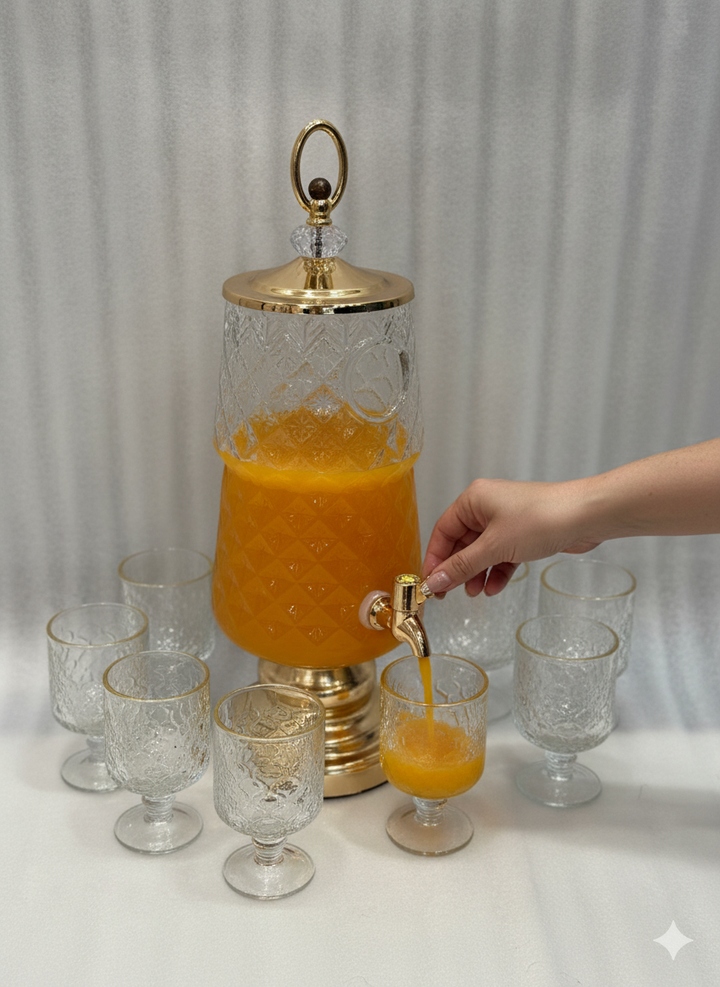 Luxury Crystal/Glass Beverage Dispenser 1Pc Dispenser 6Pc Glass
