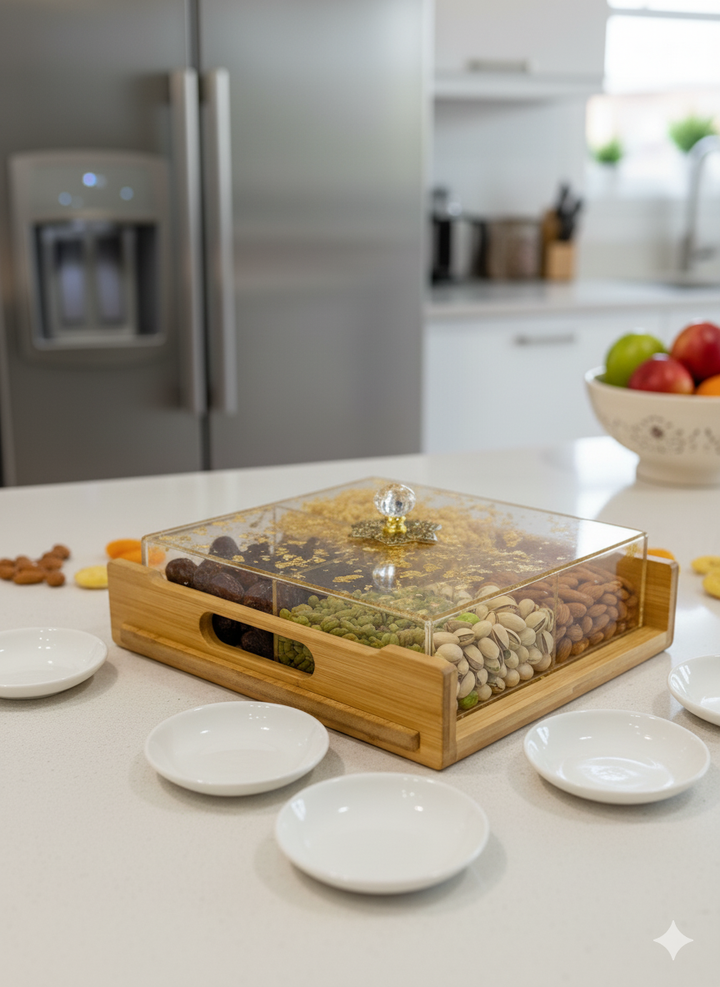 1 x Luxury Wood Gold Acrylic Dry Fruits Storage Box