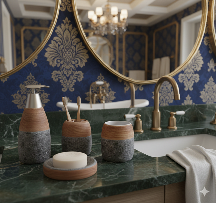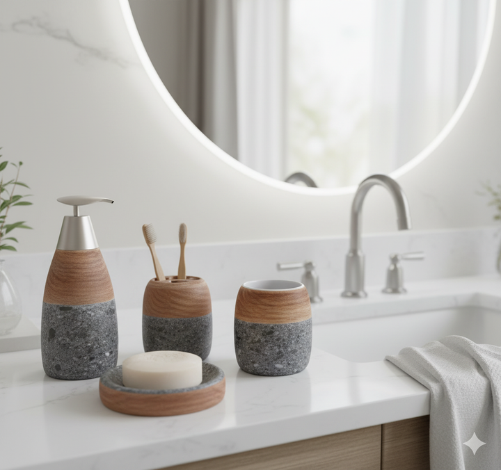 This set is designed to organize and elevate the look of your bathroom counter. It typically includes the essential items you need for daily hygiene: