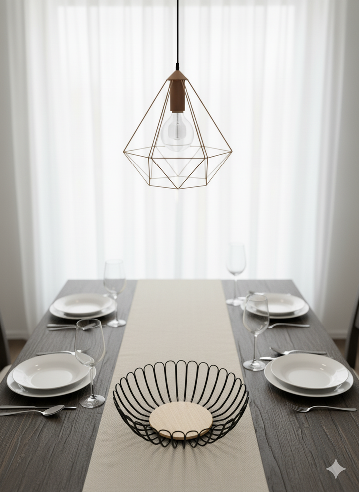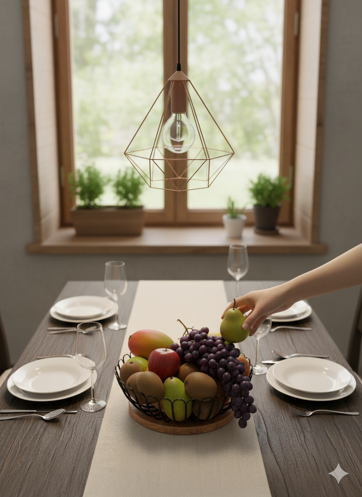 Modern Design: The combination of the sleek black metal wire frame and the light-colored wooden center creates an aesthetic that is both functional and decorative.