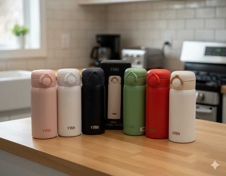 Stay refreshed wherever you go with the YIMI Portable Insulated Tumbler. This stylish and practical flask is designed for both hot and cold beverages, making it your perfect companion for the office, gym, or travel. The tumblers come in a variety of modern, appealing colors—including blush pink, creamy white, deep navy, earthy green, vibrant red, and classic white with a tan lid—ensuring there's a shade to match every style. Its compact size and sleek, minimalist design make it easy to slip into any bag, providing hydration without the bulk.